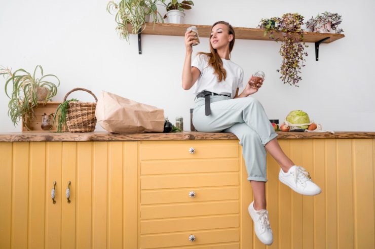 Într-un spațiu îngust, pereții sunt cel mai bun aliat. Montează dulapuri înalte până la tavan pentru a folosi eficient fiecare centimetru. Sertarele adânci, organizatoarele glisante și suporturile montate pe perete ajută la menținerea ordinii fără a ocupa spațiu util la nivelul podelei. O bucătărie bine organizată pare întotdeauna mai largă și mai aerisită.